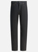 Jeans "Monkey Cisco" Kapital, realizzati in denim tinto Kakishibu e caratterizzati da un motivo Sashiko Indaco integrato nella struttura del tessuto. Il modello presenta una costruzione a cinque tasche, chiusura frontale con bottoni e cintura regolabile con fibbia applicata sul retro. La silhouette segue linee leggermente morbide, con dettagli visivi e funzionali che includono una toppa con logo intrecciato e una toppa in pelle goffrata sul retro.