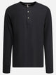 T-shirt serafino "Henley" Merz b. Schwanen con maniche lunghe e struttura a cuciture laterali. Realizzata in cotone biologico lavorato con metodi tradizionali, presenta taglio sagomato e bordi rifiniti. La filettatura del bordo del serafino è in tessuto di cotone intrecciato, i bottoni sono in vera madreperla. La silhouette segue una linea regolare e la vestibilità è classica. Polsini in maglia piatta e inserti triangolari sotto le braccia completano la costruzione.
