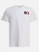 T-shirt con logo tricolore Moncler realizzata in jersey di cotone biologico, dalla struttura compatta e superficie uniforme. Il capo presenta una silhouette regolare e lineare, progettata con cuciture essenziali. Il collo è a giro, mentre le maniche sono corte e rifinite con bordi piatti. Gli inserti ricamati valorizzano la parte frontale, fornendo un punto focale identificativo del brand. Il tessuto assicura leggerezza e sensazione di morbidezza a contatto con la pelle.