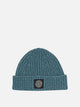 Berretto in lana mouliné Stone Island, realizzato con filato mouliné a finezza 3. La struttura presenta una silhouette aderente, con risvolto a costine posizionato nella parte inferiore. La lavorazione evidenzia la texture irregolare del tessuto, mentre la patch con logo Compass applicata sul davanti ne definisce l'identità. Il modello mantiene una costruzione compatta, favorendo aderenza e copertura uniformi.