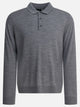 Polo in lana merino Vince, realizzata in lana merino extrafine lavorata a maglia fine. Struttura regolare con colletto classico e abbottonatura frontale a tre bottoni. La superficie presenta una lavorazione compatta, rifiniture a coste su polsini e fondo.