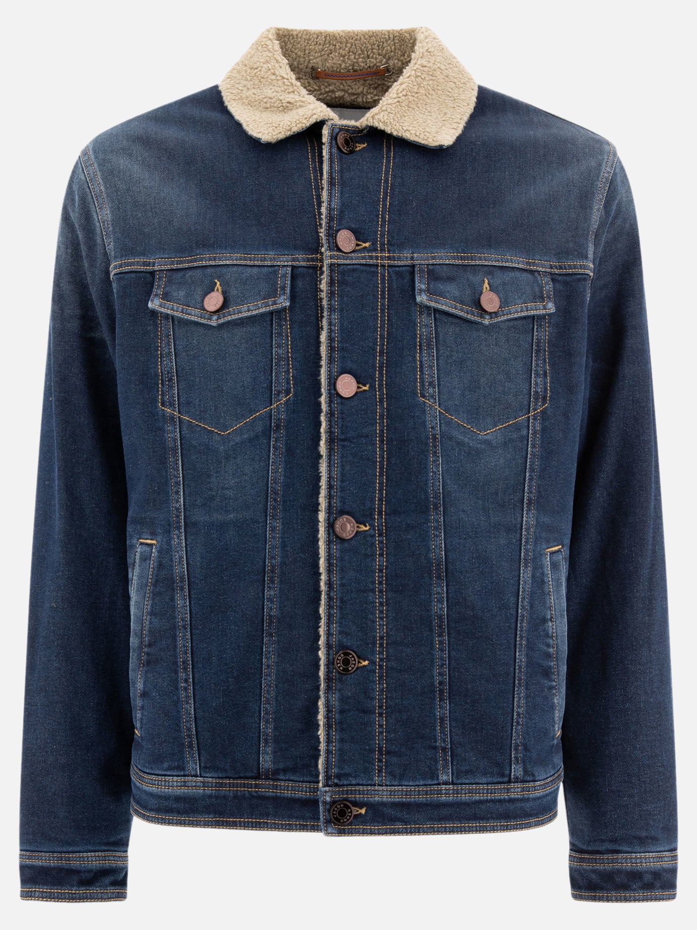 Jacob Cohën's denim and shearling jacket is the perfect garment for those who want to combine style and comfort. This extraordinary piece is designed for men who appreciate quality and refined design, making it ideal for a casual yet sophisticated look. The durable denim fabric combined with the shearling interior offer maximum warmth and a luxurious feel.