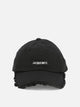 - Brim with topstitching and fringed edges