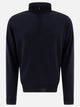 John Smedley merino wool "Tapton" half-zip sweater, made of extra-fine medium-weight merino wool, constructed from 24-gauge. The construction features a high collar closed with a short zipper, long sleeves and finished edges. The silhouette features a standard, untucked fit designed to fit with comfort and stability. The knit shows smooth surfaces, featuring a fine regular knit stitch texture.