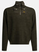 Kapital's cotton-wool half-zip sweater, made of loose-knit fabric with a compact structure. The silhouette features regular shoulders and long sleeves, with a half-zip at the front. The main composition is absorbent cotton, combined with a small functional pocket placed next to the zipper. The product integrates metal buttons, attached for functional and decorative details.