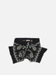 Kapital "Kesa" scarf, rectangular pattern with a linear silhouette. The compact structure is achieved by decorative workmanship that features a bandana pattern distributed over the entire surface. The main material has a soft hand and a fit that easily adapts to different styling options. The contemporary graphic design makes the scarf a functional and adaptable accessory, with defined details that maintain a smooth texture.
