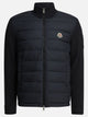 Moncler's lightweight "Tricot" down jacket, constructed from a fine 5-gauge cotton knit, features a front structure enriched with down filling inserted in a micro chic lining. The high-neck design with zipper closure offers a compact, streamlined silhouette. The workmanship is finished with embroidered details, while welt pockets integrate functional elements to the garment.