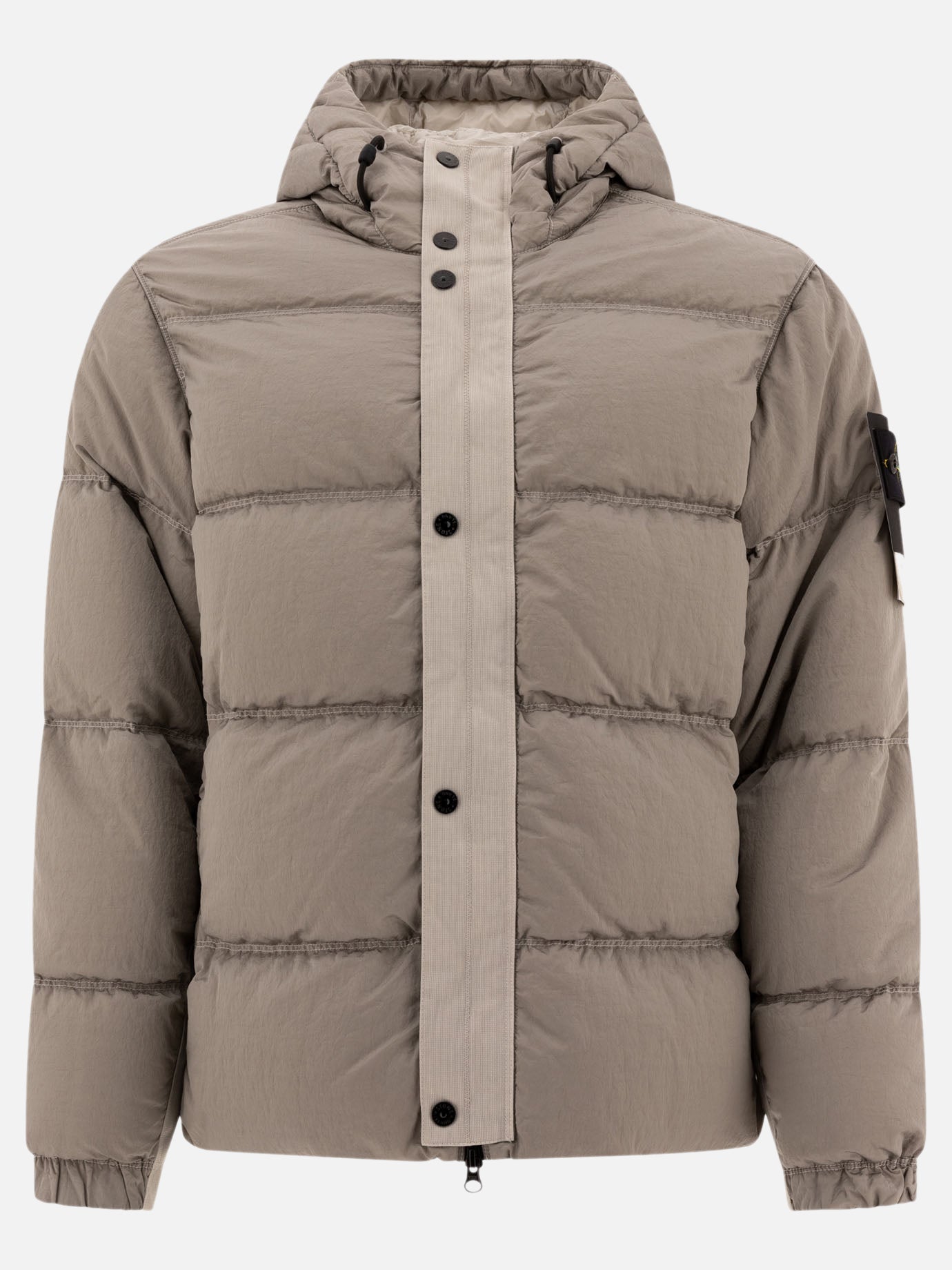 Stone Island's "Nylon Regenerated" down jacket, designed for the modern man, stands out for its clean, functional aesthetic. Made of NYLON METAL, an innovative material, this long-sleeved, solid-colored garment offers ideal protection against the cold while maintaining a contemporary and versatile style.