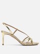 Aquazzura "Talk To Me 75 mm" heeled sandals with a structure composed of snake-effect leather inserts and 90s-inspired thin straps that wrap around the foot. The construction features a stiletto heel that rests on a thin sole, with an adjustable slingback strap for precise fastening. The insole is made of leather and is finished with a printed Aquazzura logo.