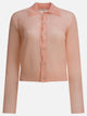 Auralee mohair wool cardigan knitted from ultra-fine South African mohair kid yarn. The knit, characterized by a light structure and smooth texture, has a delicate transparency given by the fineness of the fibers. The silhouette is defined by a relaxed shape, and the knit construction gives an airy look without structural rigidity. The garment avoids the tingling sensation typical of mohair, thanks to the incredibly fine fibers.