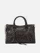 Balenciaga "Le City S" handbag made of Arena lambskin leather. The rigid structure with a compact silhouette features two hand-woven leather handles and a removable and adjustable shoulder strap. The design features a zippered closure with knotted leather pullers, with a front pocket and an interior pocket both zippered. Polished metal finishes complete the functional profile.