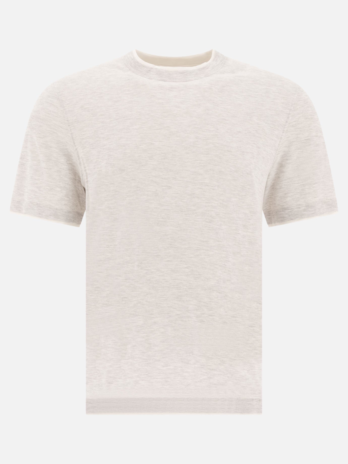 - Crew-neck T-shirt in linen and cotton jersey with Faux Layering