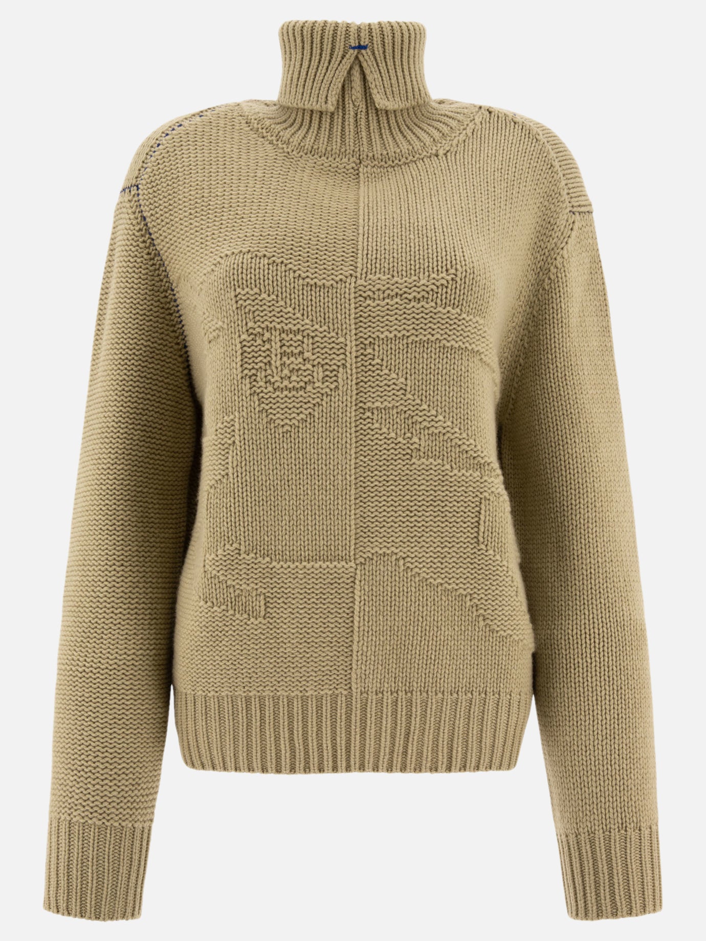 Burberry's cashmere sweater with EKD is a masterpiece of elegance and comfort, designed for the woman who wants to combine sophistication and practicality. Made from fine cashmere and featuring a tone-on-tone Equestrian Knight Design, this turtleneck pullover adds a distinctive and classy touch to your wardrobe.