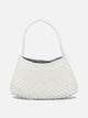 Dragon Diffusion medium "Rosanna" shoulder bag, constructed with handcrafted weave of irregular leather straps. Semi-rigid structure, baguette silhouette designed for shoulder wear. Leather straps gradually taper toward the top, defining a compact, geometric design. Unlined interior reveals a hand-sewn St. Christopher medal pendant.