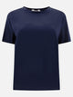 F.it silk crew-neck t-shirt with an essential line, made of pure silk fabric. The structure features a regular silhouette with slightly dropped shoulders and short sleeves with a clean hemline. The garment features minimal inner seams and simple finishing. The round neck is finished in tone-on-tone ribbing. The fabric gives a smooth and even surface feel.