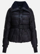 Moncler Grenoble "Bataillouse" ski down jacket made of 2L technical nylon with micro ripstop lining and synthetic padding. Collar with wool trim and front closure with zipper and snaps. The model features a removable belt, windproof gaiter and adjustable cuffs, with internal gaiters. The structure emphasizes an hourglass silhouette.