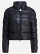 Moncler "Petra" Down Jacket. Made of water-repellent super laqué nylon, this model features down and feather down inner padding. The surface features a shiny, lightweight texture. The short construction and compact silhouette are combined with essential lines. A central zipper, zippered side pockets and a snap-button sleeve pocket complete the structure. Adjustable drawstring bottom provides adjustability.