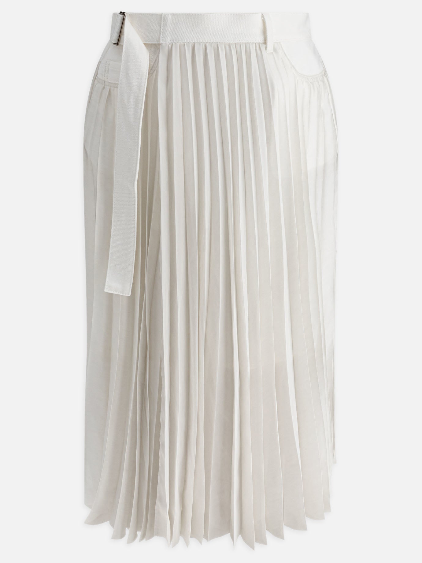 Discover the Sacai pleated skirt, a refined garment that combines tradition and modernity in a single silhouette. This skirt exudes timeless appeal and stands out for its unique structure, perfect for those seeking an elegant and casual style. The relaxed fit ensures comfort and movement, while the solid-color design makes it suitable for any occasion, from work to formal events.