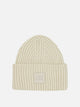 Coarse knit Ugg ribbed beanie made from a blend fabric combining acrylic, nylon and wool. The unlined construction lends lightness and breathability to the garment. The profile is linear and fitted, the silhouette follows the shape of the head without volumetric excess. The leather logo application is placed on the front as a distinctive element of the product.
